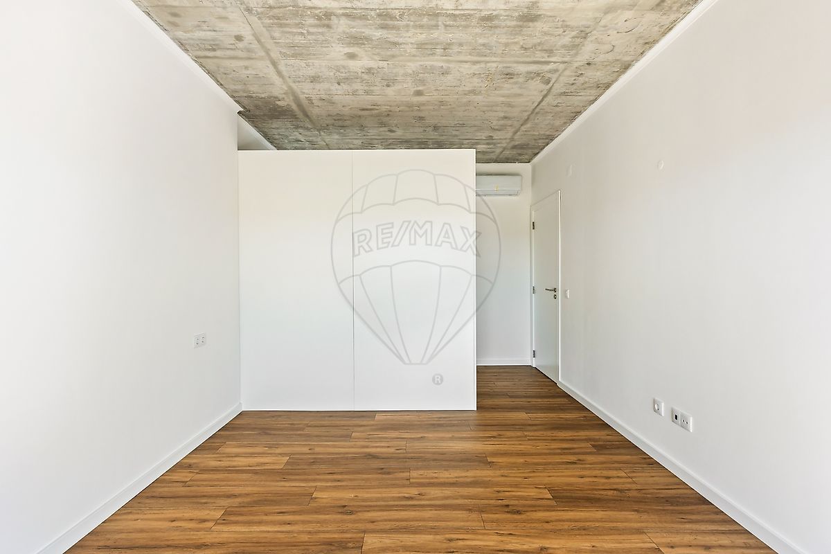 Lá dentro, o aspeto cru do betão nos tetos cede lugar à sofisticação. O conforto térmico é levado ao extremo com climatização através de ar condicionado garantindo que o controlo do ambiente está sempre à distância de um toque. Aliado a isto, um sistema de pré-instalação de piso radiante.